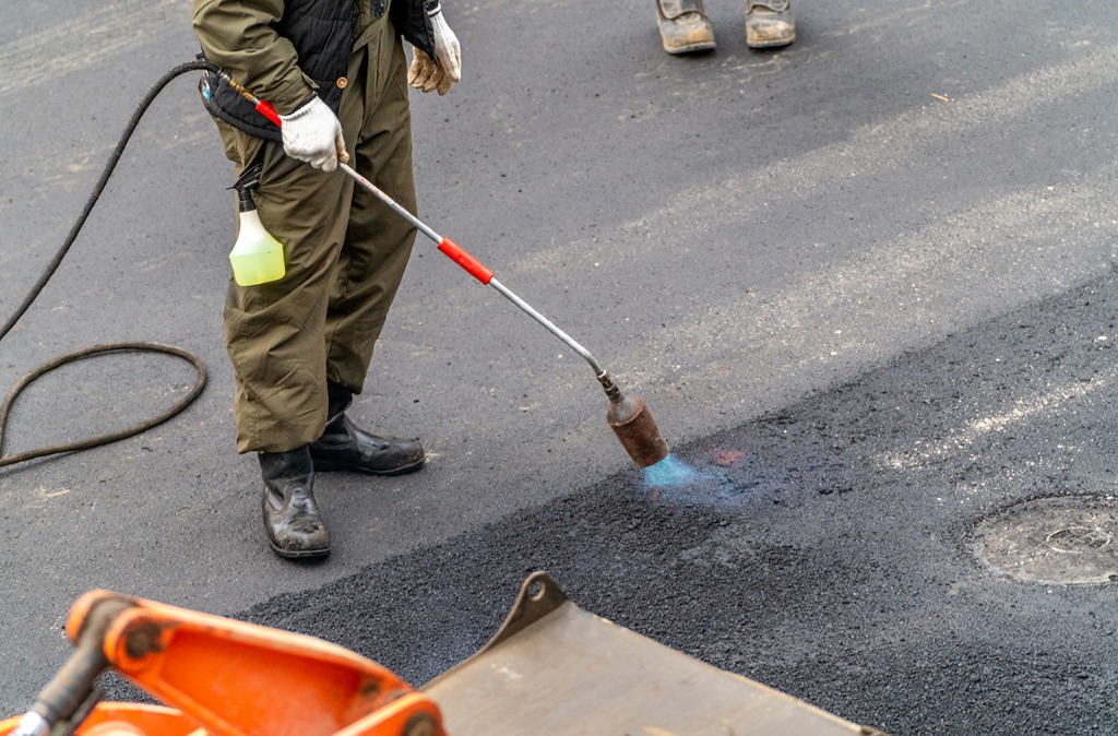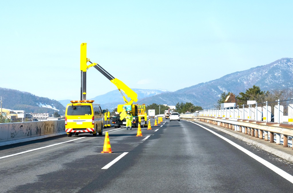 アスファルトの割れや穴の補修、ガードレールなどの修繕や取り替え、塗装の修正などを行う工事です。
